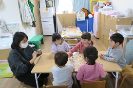 - 当園では、経験豊富な保育士資格を有した保育士が、一人ひとりの発達状況や生活リズムに合わせて、愛情を持って保育致します。