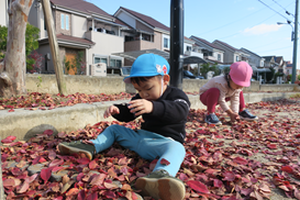 秋が深まり 固定遊具でなくても 落ち葉拾いも楽しいね♪