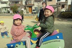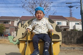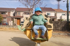 公園内を探索した後は バネ遊具でユラユラ