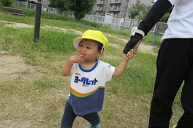 保育者の手を引っ張って あちこち探索