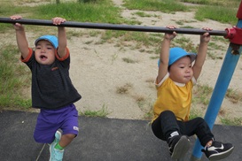 「ぼくも 見ててね」「片手でぶら下がれるよ」
