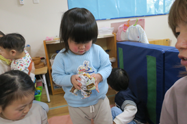 ひよこ組は 室内で プレイマットで遊びました
