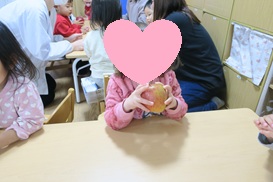 食育で「りんご🍎」のお話を給食の先生