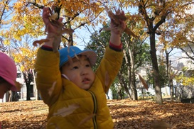 落ち葉を皆で集めて お山を作りました