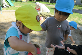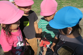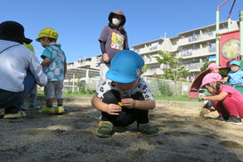 バッタ みつけたよ! 2025年10月23日 昨日の寒さは収まり 今日はおひさまの下では 汗ばむほど! 第二公園で遊びました 「みてみて~」とバッタを探し ようやくつかめるようになりました あおむしは触らず スコップですくって 観察?! 草花も 採ることが大好き! お砂遊びも 落ち着いて出来る 気候になりましたね 気持ちいい風やお日さまのもと たくさん遊びましょうね! 【朝おやつ・完了食 幼児食】 豆花クッキー 【給食・完了食 幼児食】 【3時おやつ・完了食 幼児食】 « 前の記事 次の記事 »