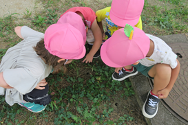 うさぎ組さんは 地面に空いた穴を「ダンゴムシのおうち」と言ってみたりして 興味津々