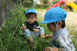 草むらで 虫探し
