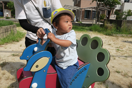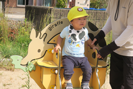 ひよこ組さんも 保育士がそばについていると 安心して乗ることができます