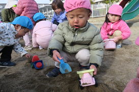寒くても 砂遊びは熱中して遊んでいます