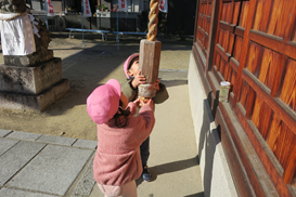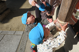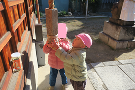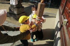 初もうで 2026年01月07日 今日は 1丁目にある八幡大神宮に初詣に行きました 拝殿中央の 本坪鈴 から下がった 麻縄を振り動かして お参りをしました お辞儀をしたり 保育士の真似をしてお参りができました 麻縄を持っても鈴を鳴らすのは難しかったりしました お願い事は… 今年一年大きなけがや病気をせず 笑顔で過ごせることが私たちの願いです 【朝おやつ・完了食 幼児食】 英字ビスケット 【給食・完了食 幼児食】 【3時おやつ・完了食 幼児食】 « 前の記事 次の記事 »