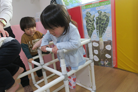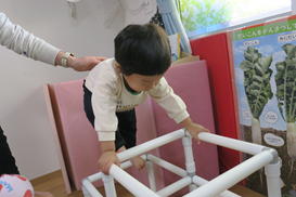 ベランダ側で 保育士がひそかに ジャングルジムを出していました