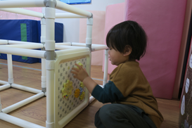 ジャングルジムの設置終わり パーテーションの扉を開けておきました
