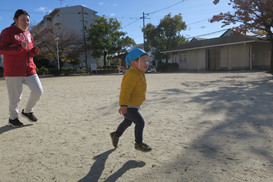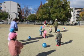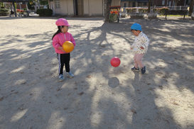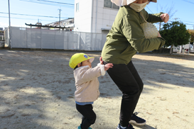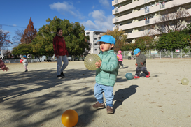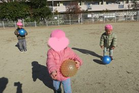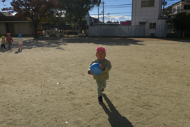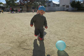 寒くなりましたね~! 2025年12月04日 冬が到来 寒い朝でした 巷のインフルエンザ大流行は… ありがたいことに 今日も 元気な笑顔が揃いました 今日は グランドにボールを持って遊びにいきました 寒いので 走って身体を温めます 「ボールちょうだい」と保育士を追いかけて つかまえます キックは 僕におまかせ~! ボールを投げて 追いかけます 「つかまえた~」 追いついて 一安心? お友だちが 気になるようです 広いグランドで元気いっぱい! 【朝おやつ・完了食 幼児食】 鯛あられ 【給食・完了食 幼児食】 【3時おやつ・完了食 幼児食】 « 前の記事 次の記事 »