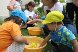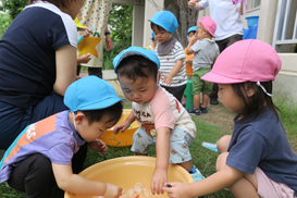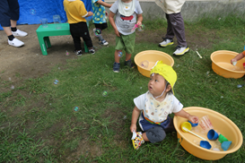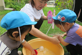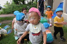 園前で 氷で遊んだり シャボン玉をみたりしました