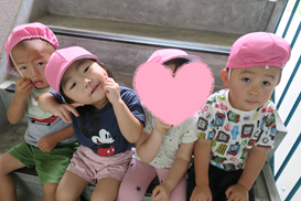 靴を履いた後 うさぎ組さんは 階段に座って楽しそうでした♬
