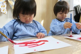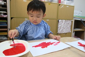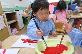 サンタさんの体を 絵の具でぬりぬり
