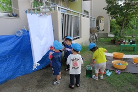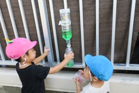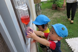 水鉄砲で色水発射🚀薄っすらと色づいた様子に