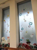 RISEの窓には雪の結晶のようにみんなのオーナメントが飾られました。