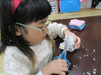 毛糸だらけになって製作しました。