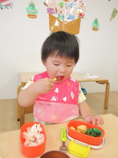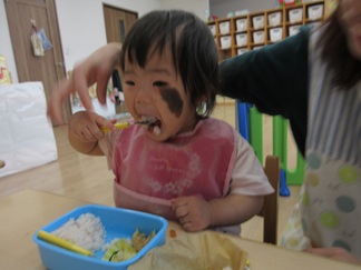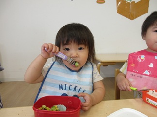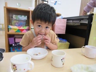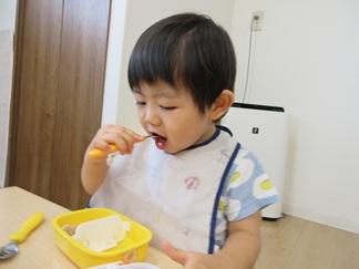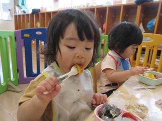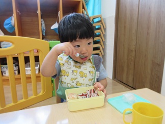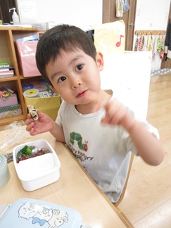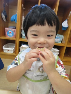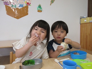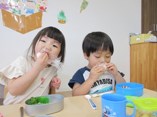 うさぎ組さんはラップおにぎりを自分でめくって上手に食べることができていてびっくりしました😍