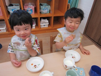 今日から美味しい給食、おやつをいっぱい食べて元気もりもり💪💪