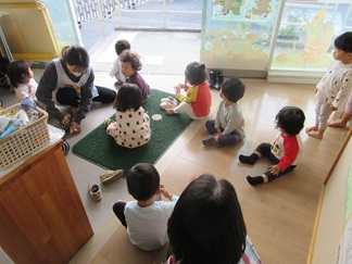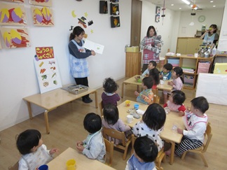 屋内に移動して、先生がおいもの絵本を読んでくれましたよ😆