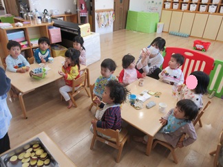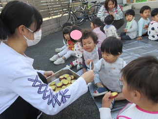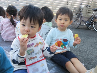 いつもと違う環境でのおやつで進みもよく、みんな嬉しそうでした🎵
