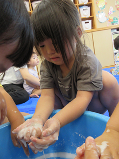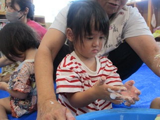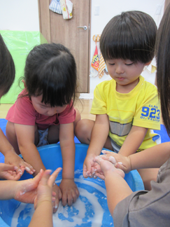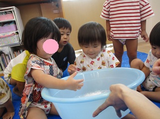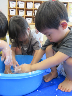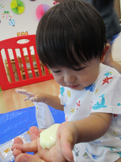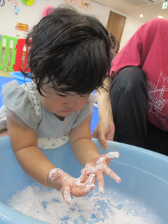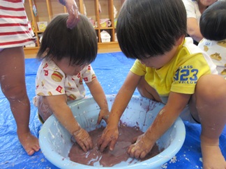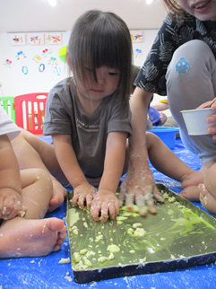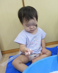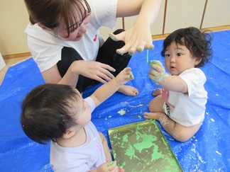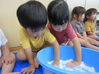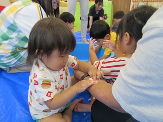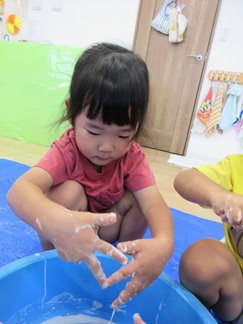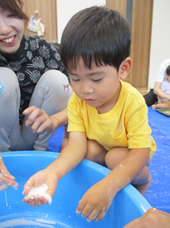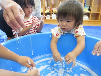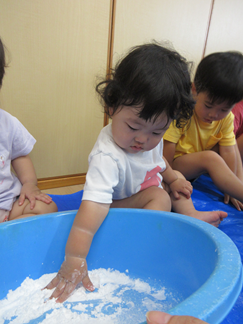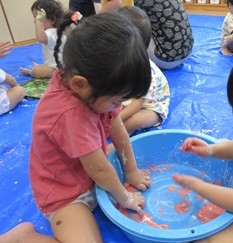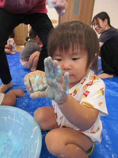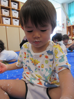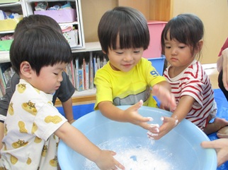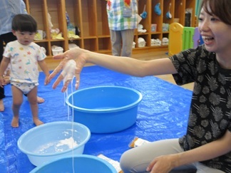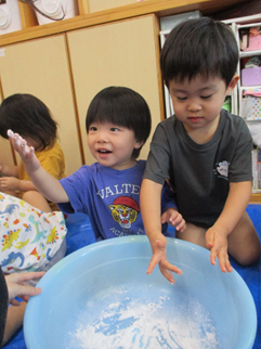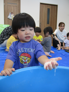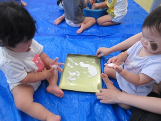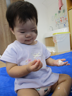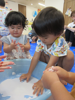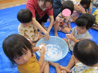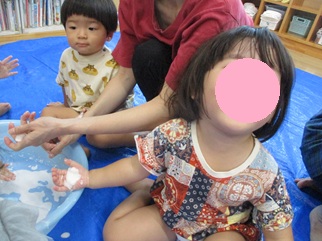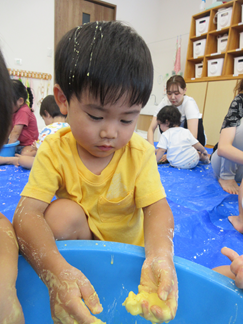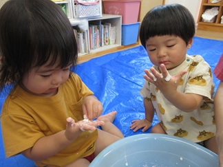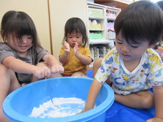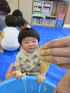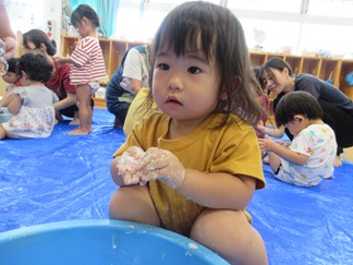ひよこ組のお友だちも嫌がることなく、片栗粉粘土の感触を楽しんで遊んでいましたよ💓