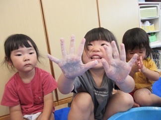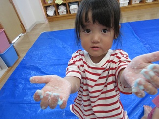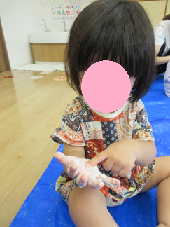 手が真っ白になっちゃった!ととっても嬉しそう😆