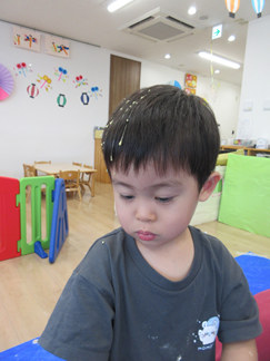 頭やお顔についてしまうお友だちもいましたよ😓