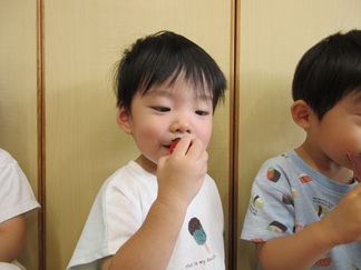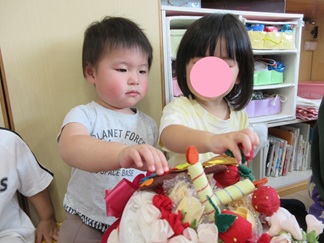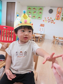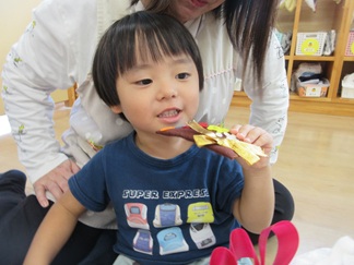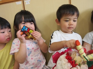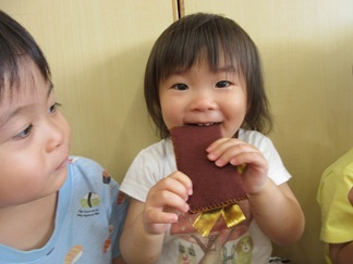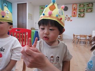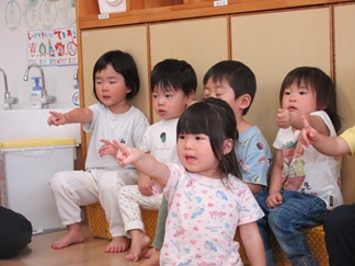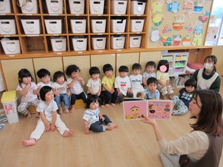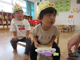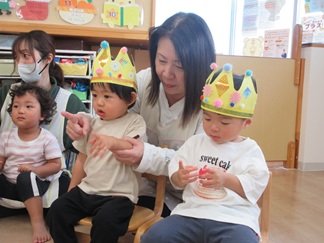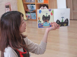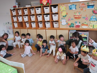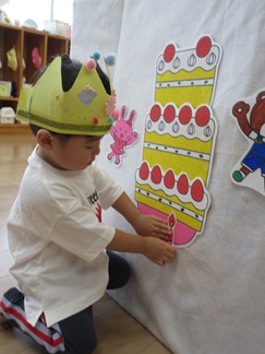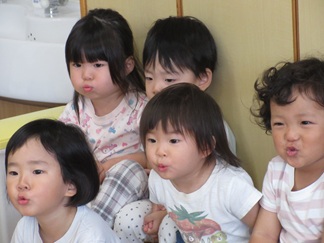 絵本の中でロウソクの火をふ~と消していたので、みんなでやってみましたよ!