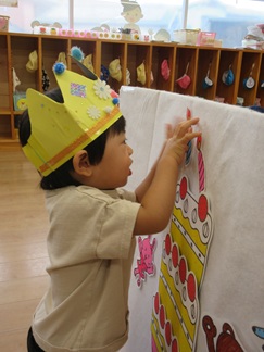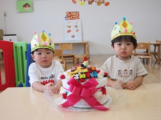 今日の誕生日会に合わせてケーキのお洋服🎂似合ってますね~!!
